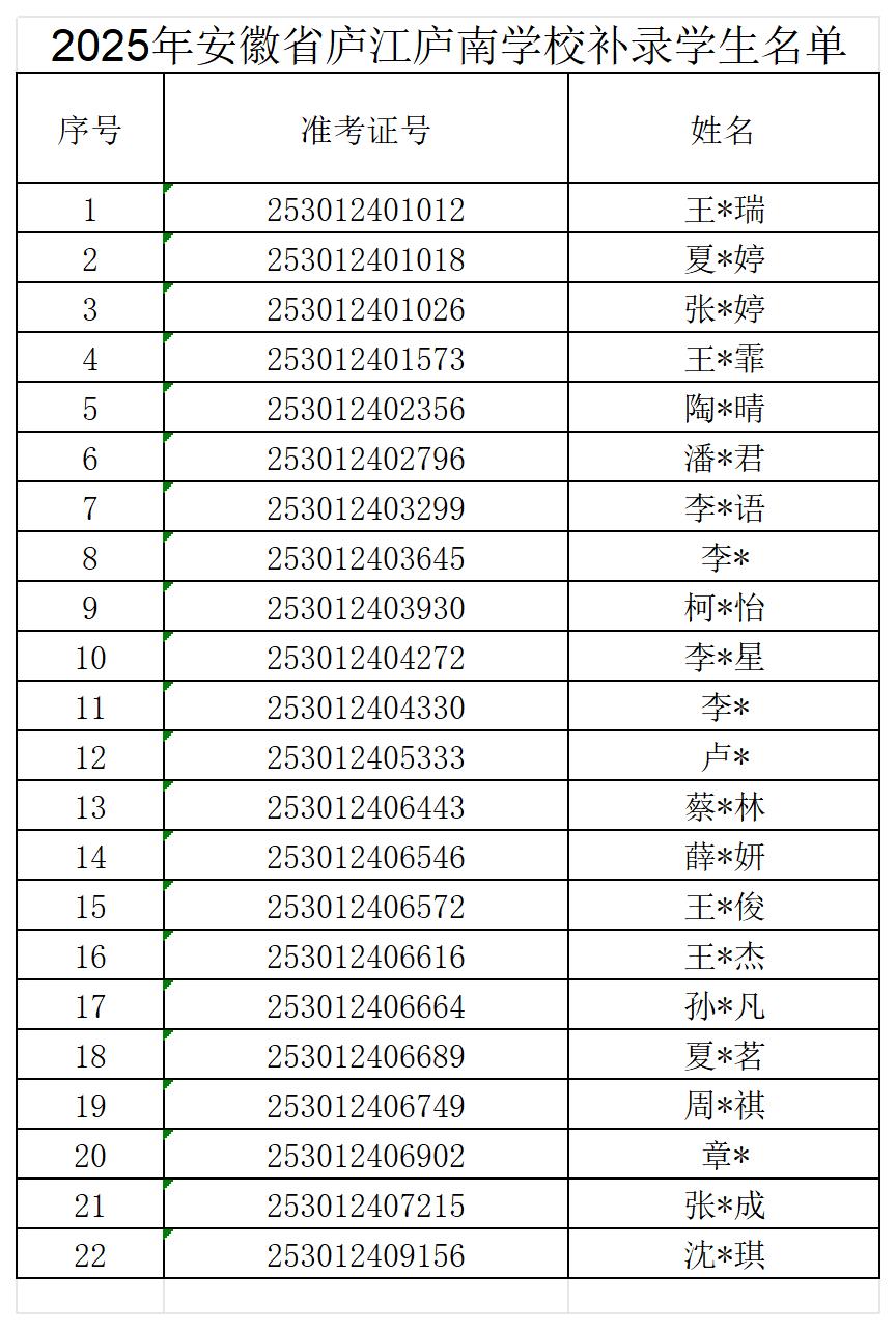 附件:2025年安徽省庐江庐南学校补录学生名单